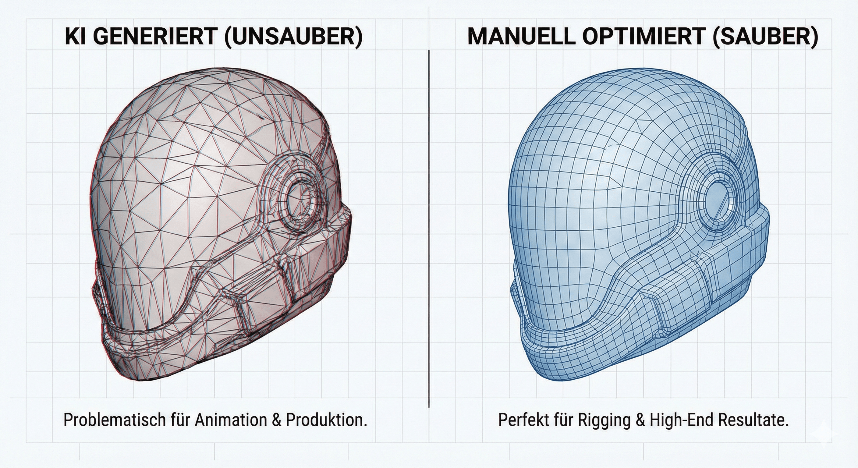 An AI-generated 3D model often has a “dirty” mesh. For static images, that might be fine — but the moment something needs to move, animate, or deform, errors appear.